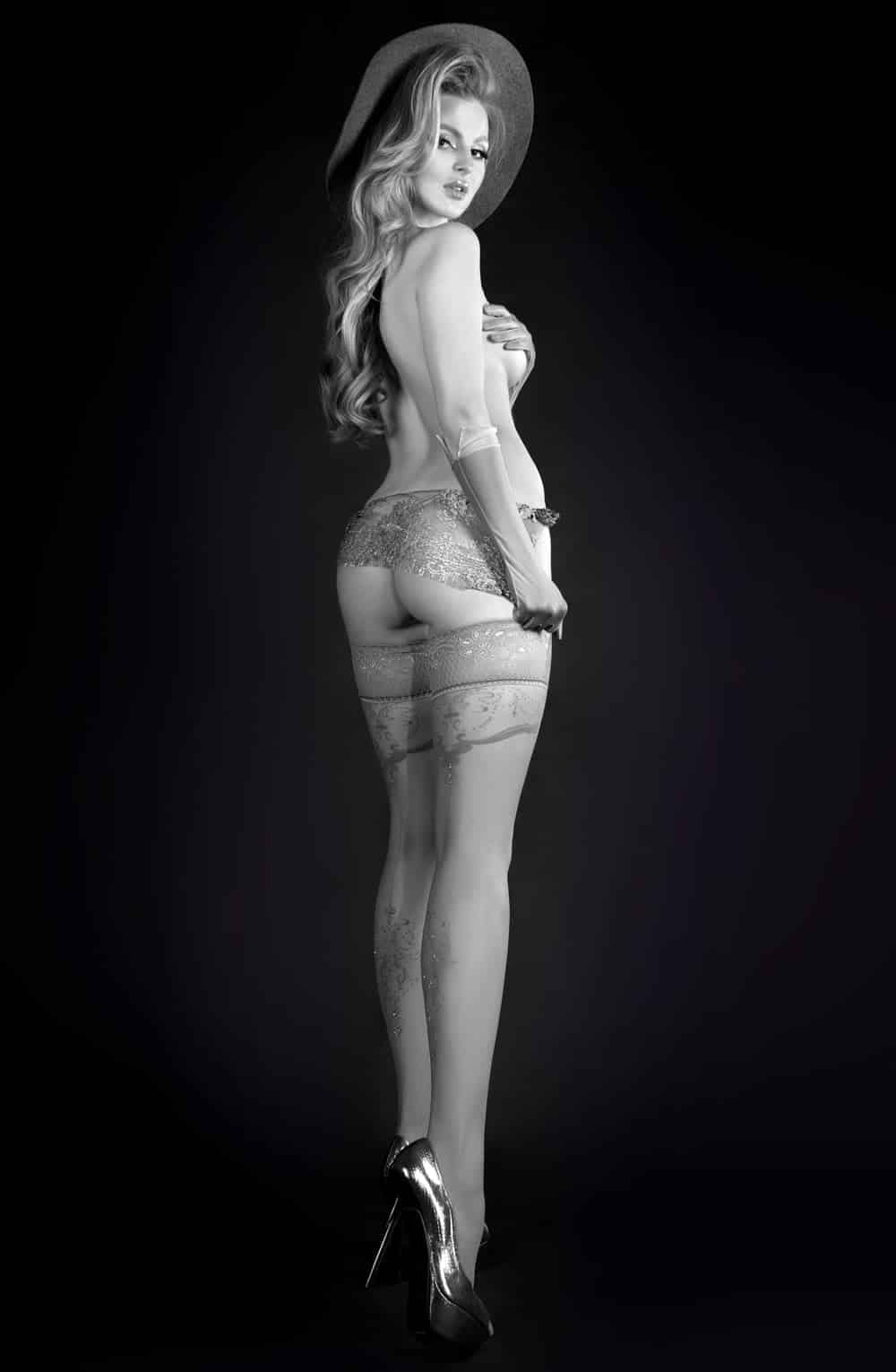 From the Gold Elixir Collection these gorgeous hold ups feature stunning detailing and a delicate lace top. The beautiful lace tops of the hold ups have two silicone strips on the inside to support comfort and fit. This item is presented in beautiful Ballerina packaging.