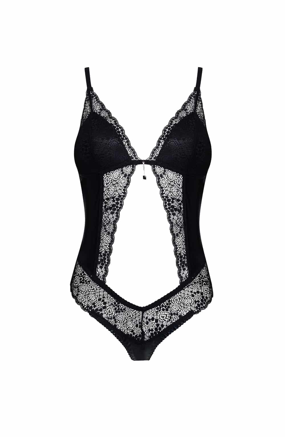 Indulge in the allure of this very exclusive, yet sensual and provocative teddy crafted from a shiny material reminiscent of latex and adorned with beautiful lace. The front cut accentuates the charms of the female body with captivating allure. Presented in elegant packaging featuring a picture showcasing the product, it bears the hologram of the Beauty Night Fashion logo, ensuring authenticity. Also included is a convenient bag-pouch for storage or laundry.