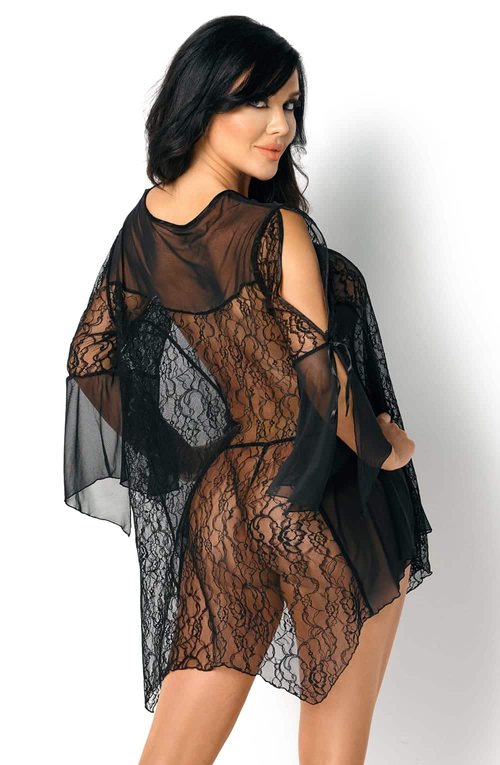 Get ready to wow with the Sissy Robe, the perfect mix of elegance and sensuality that adds a little extra magic to your look. Made from top-quality materials, this black lace robe guarantees both comfort and jaw-dropping style. Key features: Gorgeous materials: Delicate mesh and lace that show just enough, highlighting your natural beauty in the most flattering way. Chic style: Slit sleeves with lace and ribbons for a look that’s light, flirty, and oh-so-elegant. Classic black: A timeless colour that never goes out of style, making this sexy black robe perfect for any occasion. Satin ribbon tie: Wrap it up with a soft satin ribbon for a cute, feminine finish. Flattering fit: Loose and flowy, this robe adapts to your figure and highlights all the right curves. Complete the look: Comes with matching thong to finish off the set. The Sissy Robe is your go-to for romantic nights, special occasions, or just because you want to feel amazing. It also makes a fabulous luxury gift for someone special—or a treat for yourself! It arrives in stylish packaging with a photo of the product, complete with a Beauty Night Fashion hologram and a handy pouch for storing or washing your new favourite piece!