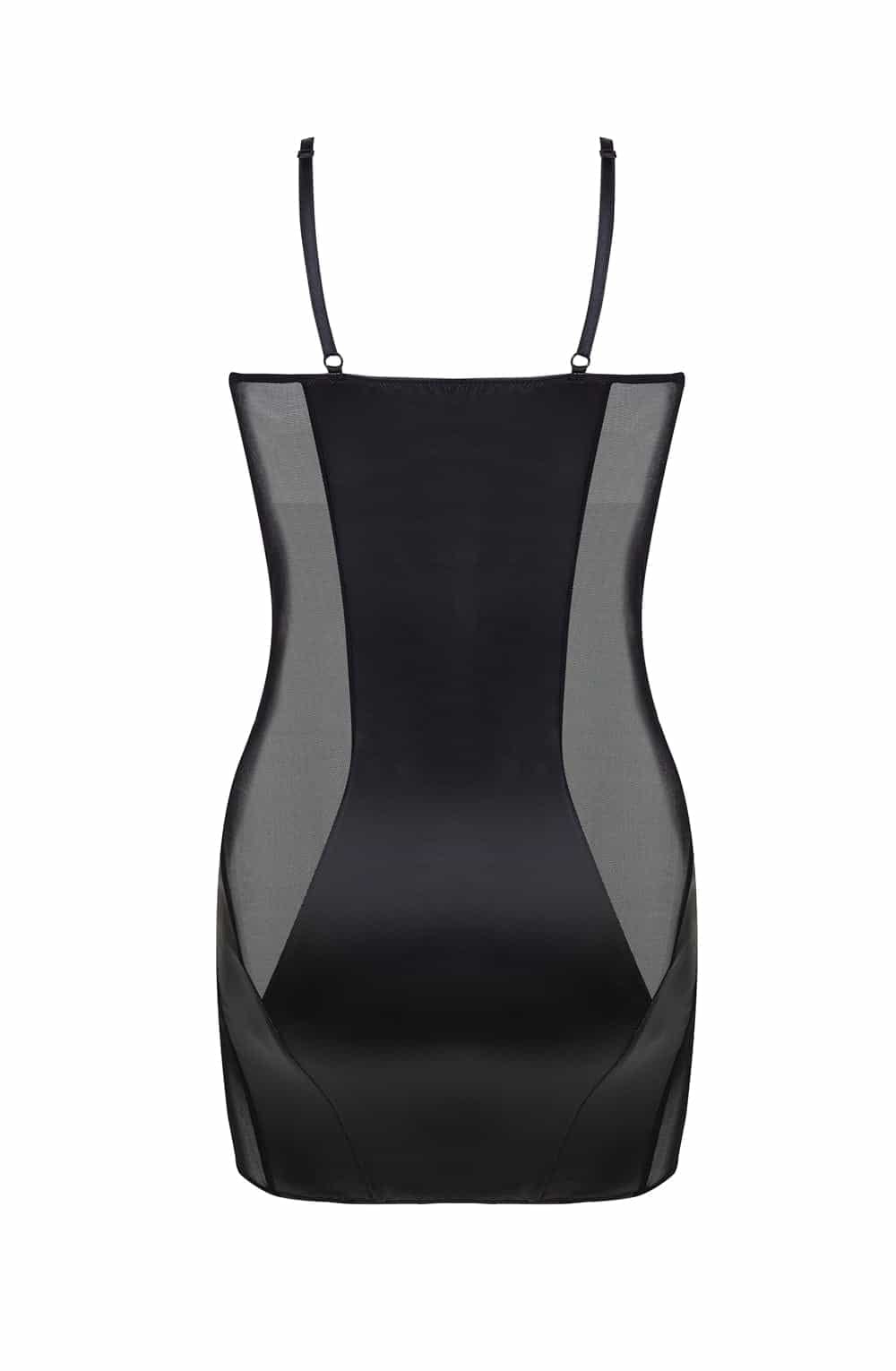 Introducing a classic, sexy black chemise crafted from tulle and lace with striking copper accents. The triangular cups beautifully enhance the bust, while the straps elegantly cross at the back for a captivating look. The set also includes thong panties featuring the same exquisite lace motif. Arrives packaged in a Beauty Night box.