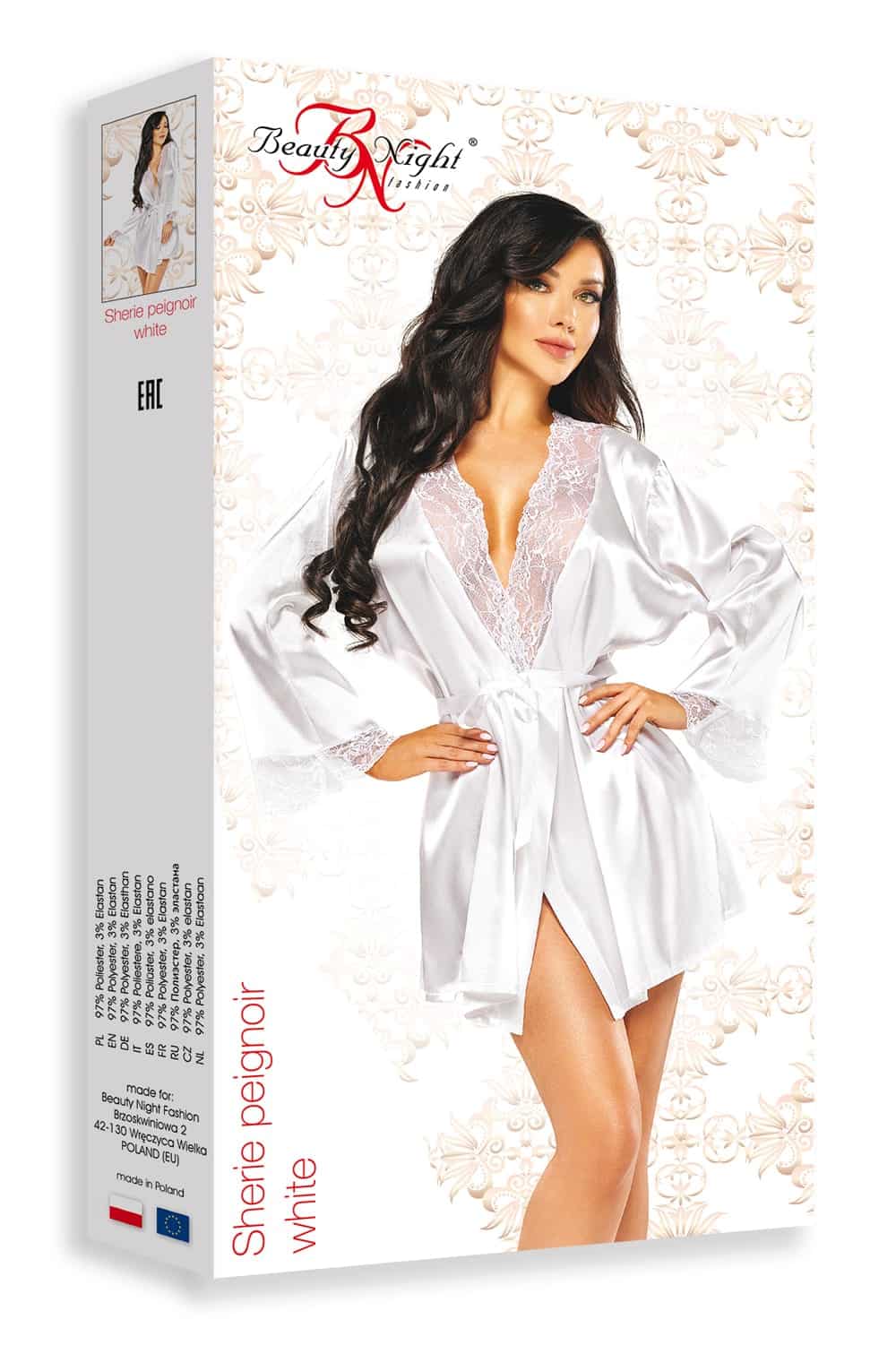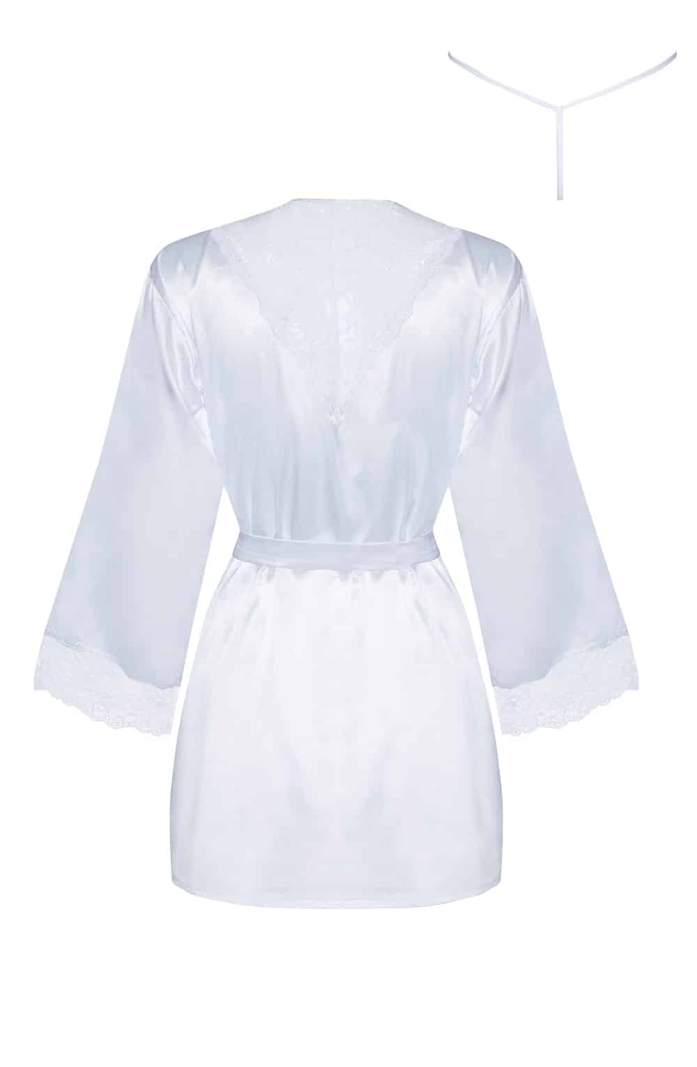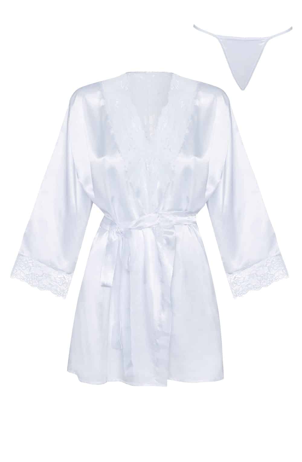Treat yourself to a moment of pure luxury with the Sherie Peignoir White! Made from soft, high-quality satin, this white satin robe gently hugs your body for unmatched comfort and timeless elegance. Key Features: Luxurious satin fabric: Crafted from premium satin that drapes beautifully, wrapping you in comfort and style. Elegant lace details: Delicate lace inserts on the sleeves and neckline bring a touch of femininity and sophistication to this white lace robe. Flattering fit: The satin tie at the waist allows you to adjust the robe for the perfect, figure-flattering fit. Matching thong: Complete your look with the included matching thong for an effortlessly chic set. Gift-ready packaging: Comes in an elegant box with a product photo, making it a fabulous gift idea for someone special—or a treat just for you! Add a little luxury to your wardrobe with the Sherie Peignoir White—perfect for romantic evenings or indulgent mornings!
