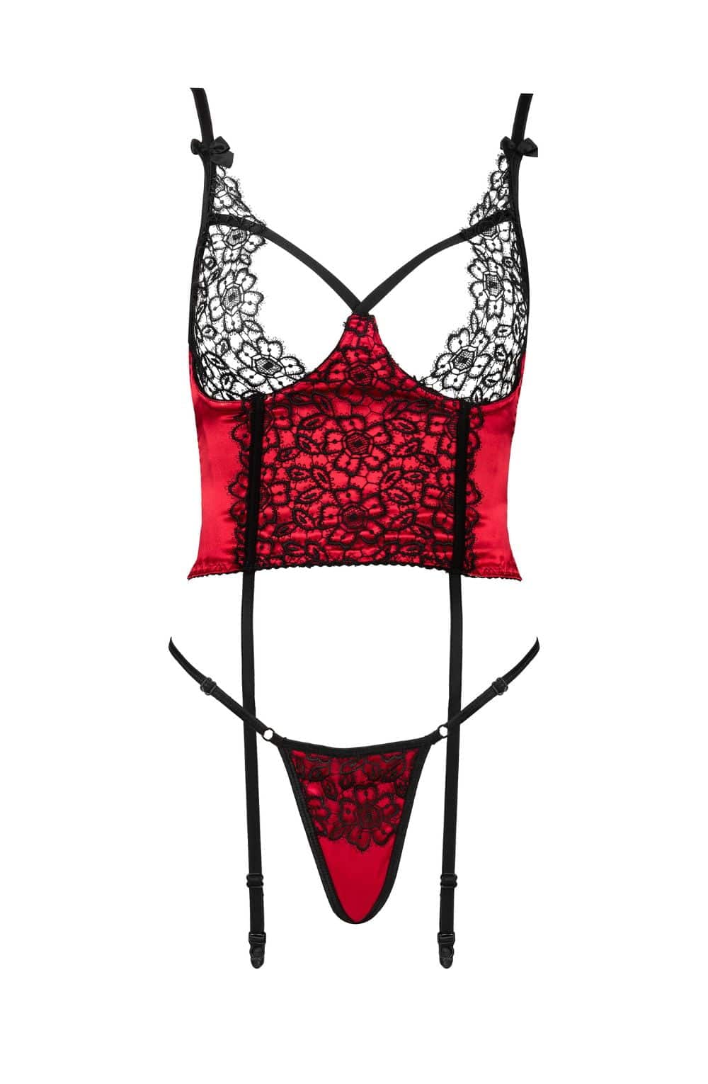 Experience ultimate sensuality and elegance with the Olena Corset set, featuring a short corset and panties crafted from luxurious red satin and black guipure. Designed to ignite passion and accentuate your feminine curves, this set is a must-have. Key Features: Semi-open, semi-transparent cups with underwires beautifully showcase the bust. Back lacing and adjustable straps ensure a custom fit. Chic panties that elegantly highlight the buttocks, adding irresistible charm to the ensemble. Made from premium red satin and black guipure for both comfort and an exquisite appearance. Comes in elegant packaging with a product photo, making it an ideal gift.
