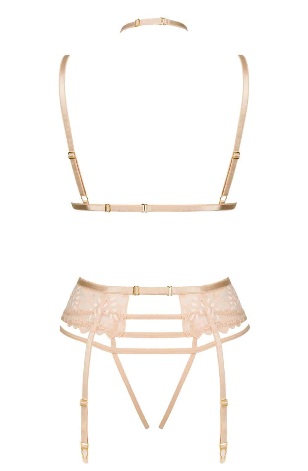 Belinda is a classic erotic lingerie set which consists of a bra suspender belt and thong