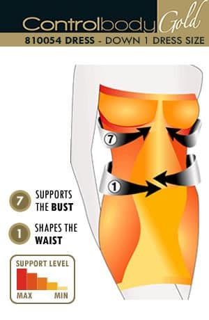 Strapless shaping dress with moderate compression providing a medium level of support. Shapes the waist lifts the bottom smooth the tummy shapes the hips supports the bust and supports the back. Item comes packaged in a Control Body box.