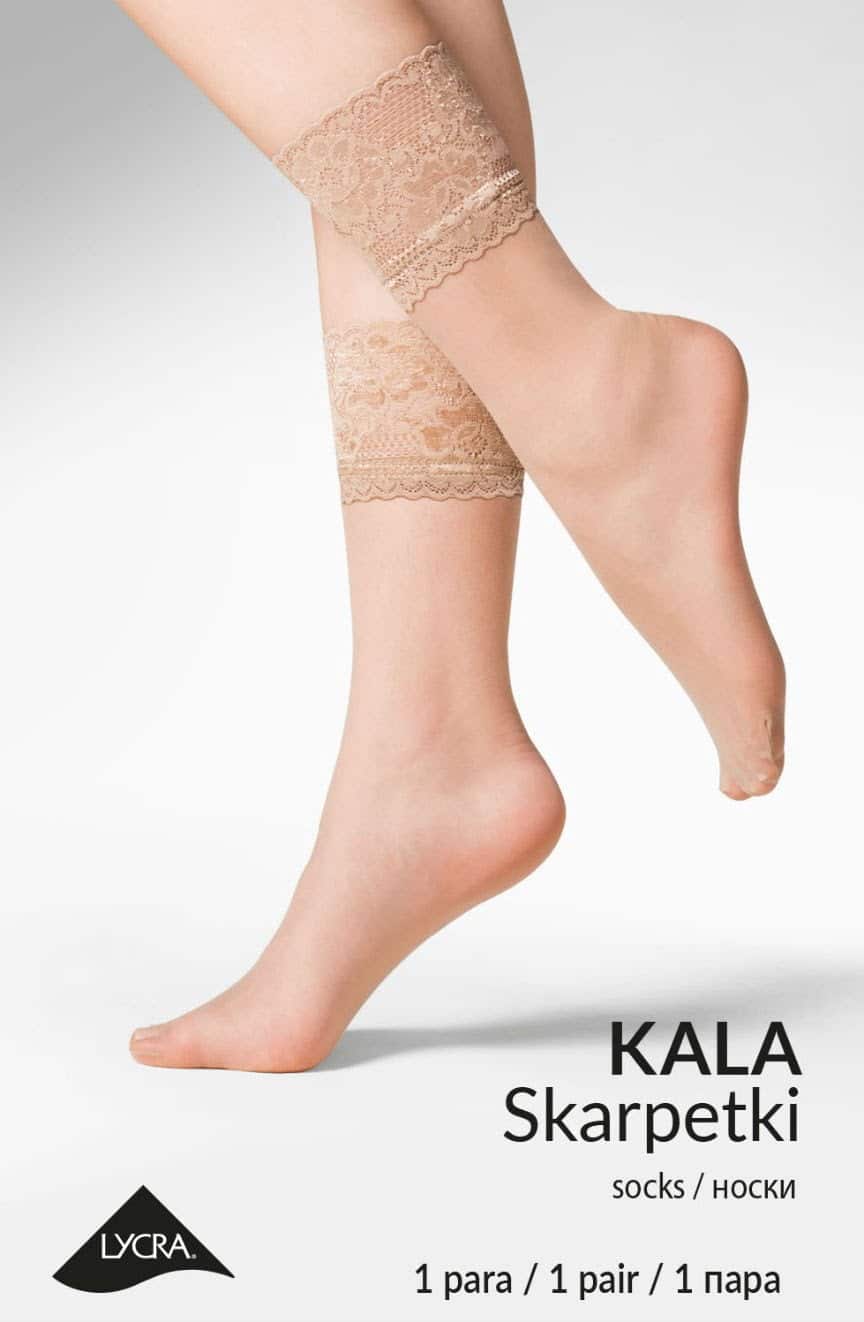Kala are exclusive pattered socks made of lyra fibres braided with polyamide. Lace top and invisible reinforced toe. Arrives packaged in branded Gabriella packaging.