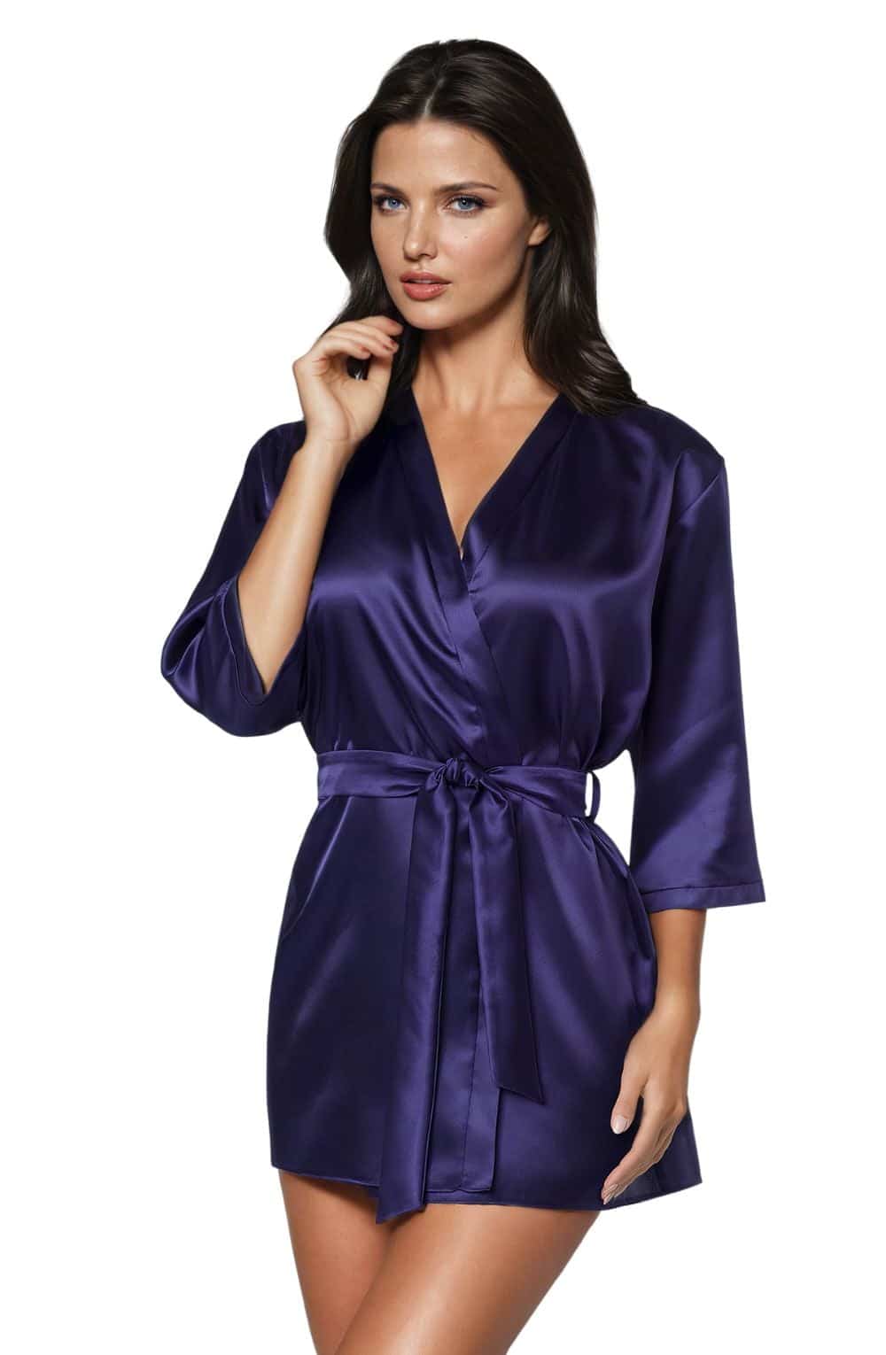 A classic dressing gown made from delicate satin. Features 3/4 sleeves and a waist belt. Aria arrives packaged in her own Irall box with lovely matching tissue paper.
