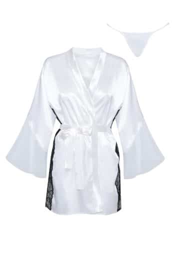 Step into a world of luxury with the Sara Peignoir White Robe—your new go-to for elegance and comfort at home! This stunning robe is designed for women who want to feel fabulous and sophisticated, whether they’re enjoying a cozy night in or hosting a special occasion. Main Features: Luxurious satin fabric: Wrap yourself in the soft, delicate satin that caresses your skin, ensuring you feel as good as you look. Sensual design: The classic white colour, complemented by eye-catching black lace accents and chic mesh inserts, creates a look that’s both timeless and unique. Adjustable satin belt: Flaunt your figure with the satin belt that cinches at the waist, allowing for a customizable fit that flatters every silhouette. Versatile cut: Perfect for romantic evenings, lounging on the couch, or entertaining guests—this robe does it all! Matching panties included: Complete your ensemble with the coordinating thongs, making sure you feel fabulous from head to toe. Flared sleeves: The wide, flared mesh sleeves add a playful touch of elegance that elevates your look and keeps you feeling light and breezy. Perfect finishes: Each detail is crafted with love, ensuring durability and a style that stands out. Gift-ready packaging: Comes beautifully packaged with a stunning product photo, making it an ideal gift for birthdays, anniversaries, or just because! Elevate your loungewear game with the Sara Peignoir White Robe. It’s the perfect blend of luxury and comfort, making every moment at home feel special. Treat yourself or surprise a loved one with this must-have addition to any wardrobe—because you deserve to feel extraordinary every day!
