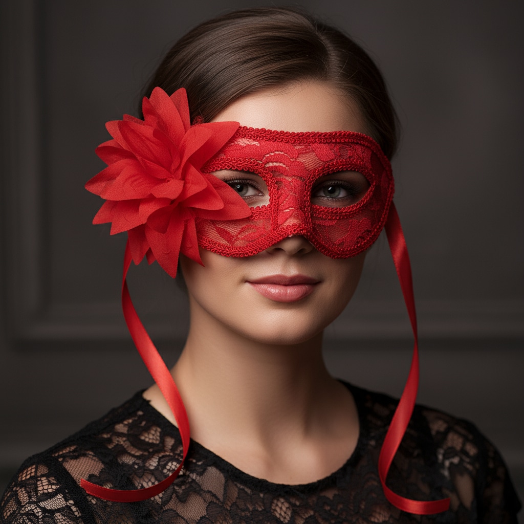 Unleash playful mystery with the OHMAMA Passion Red/Black Lace Flower Masquerade Mask. This red lace masquerade mask marries romantic lace detailing with a bold flower accent on the side. The rigid body preserves its elegant shape, while soft satin ribbons let you adjust for comfort. Eye-cut openings frame your gaze, letting your expression shine through without losing allure.