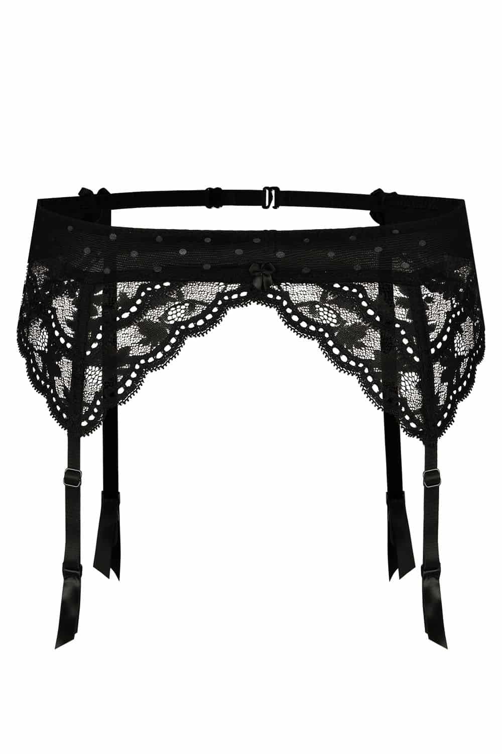 A beautiful suspender belt with a pretty bow in the centre. This suspender belt is decorated with a transparent mesh band with subtle polka dots and gorgeous lace has been used throughout the rest of the suspender belt. The suspender straps are adjustable and finished with ribboning at the ends and metal rubber suspender clasps. Two adjustable parallel elastic bands feature at the back to fasten the suspender belt. This item arrives packaged in a lovely Roza box making it ideal as a gift or special treat. The Lagerta collection comprises of a push up bra, soft cup bra, thong or brief all available in black or white. Each piece is sold separately to maximise the mix and match options. Please see the ‘Related Products’ tab below to see other combinations.