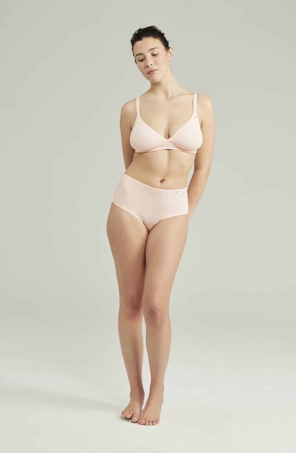 Discover The Second Skin Stretch Mid Rise Waist Brief in Blush Pink—a sustainable, medium coverage seamless brief crafted from recycled microfibre with elastic-free comfort and 4x stretch. Enjoy timeless style and eco-friendly design with Nudea.