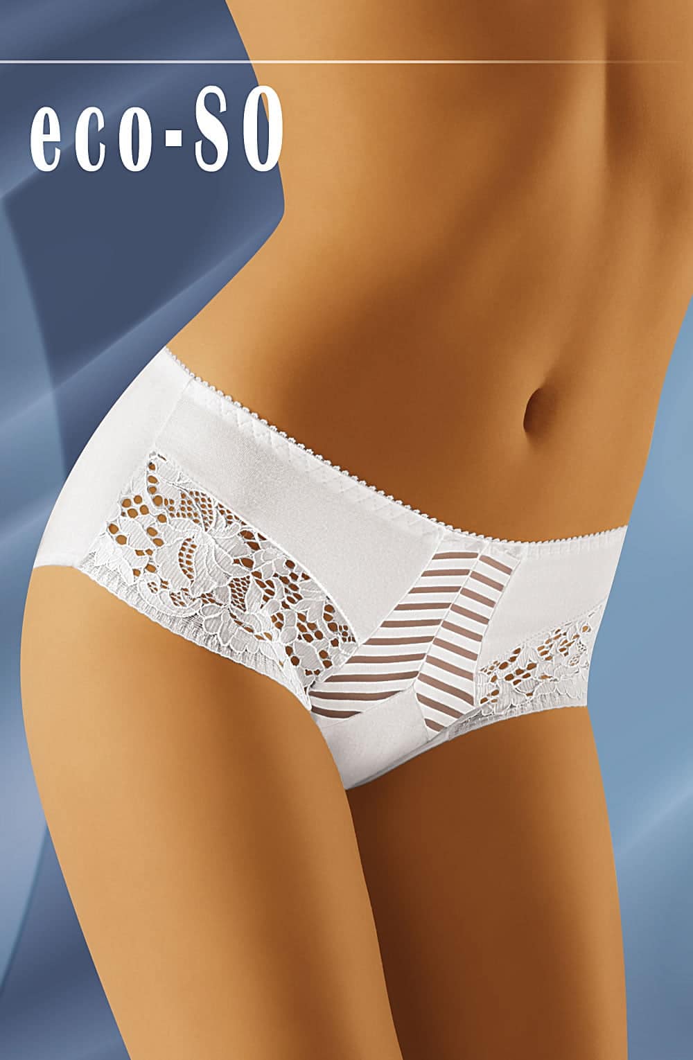 Eco-SO is a gorgeous deep brief with a striped front strip and embroidered lacy panels to the front sides. Item comes boxed. There is no minimum order quantity.