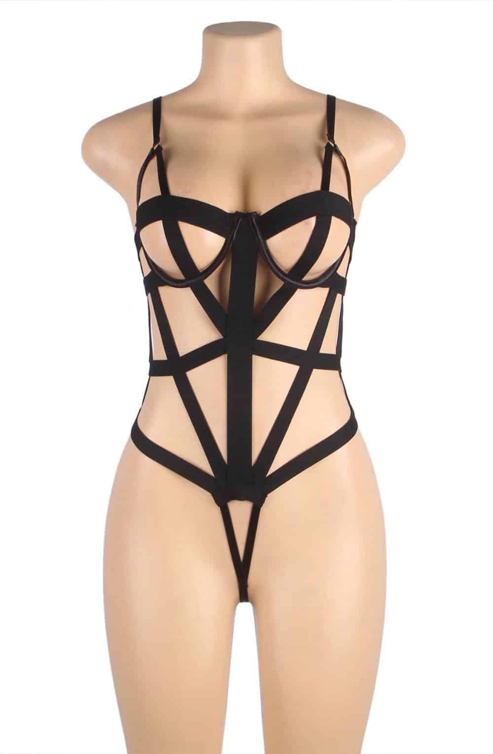 Step into confidence and style with our Strappy Bodysuit—an alluring addition to your wardrobe. The intricate strappy design effortlessly enhances your curves, creating a tantalising look perfect for intimate occasions. Embrace the bold and contemporary feel, making a captivating statement with every wear (black thong not included).