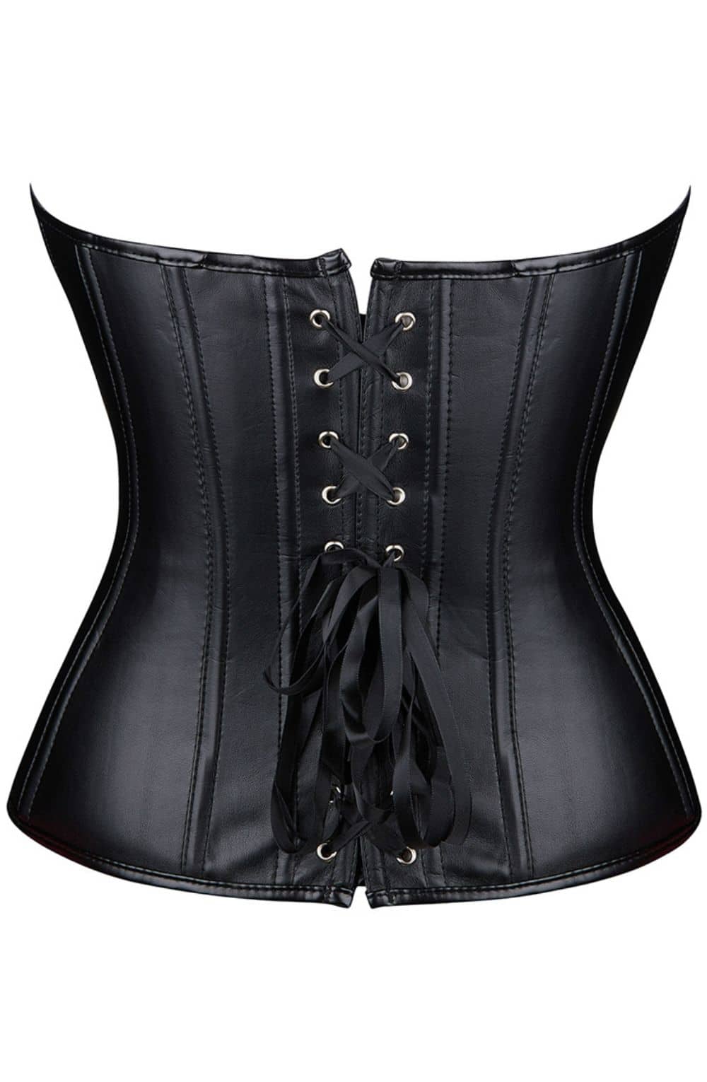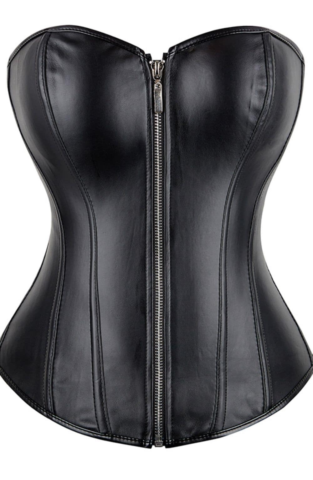 Dominate the night with this structural faux leather corset, blending punk-rock attitude with waist-cinching power. The strategic zip-and-lace dual closure system lets you toggle between dramatic silhouette control (6-8″ reduction) and quick-release comfort, making it ideal for all-night wear.