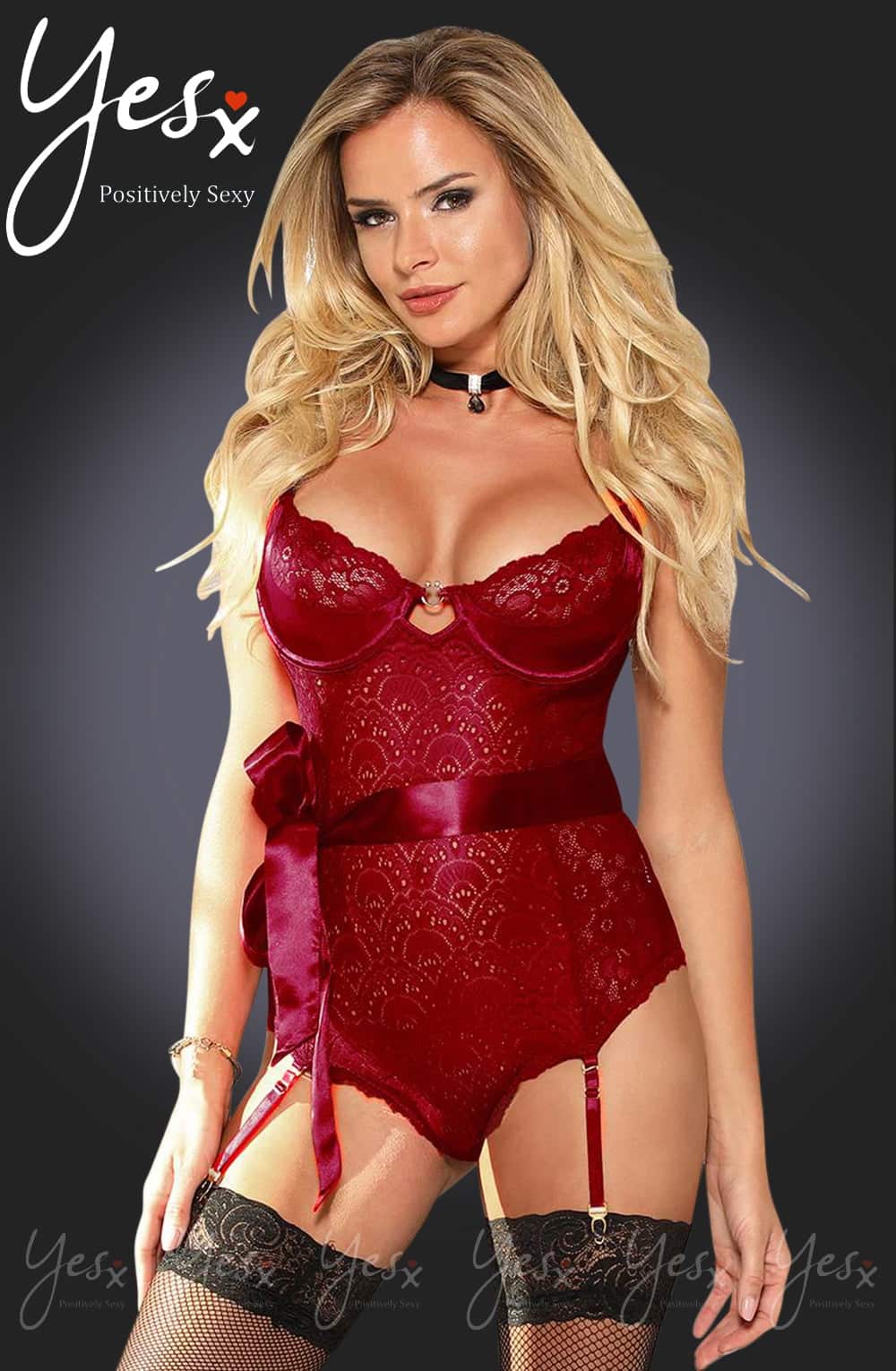 A stunning lace body with a delicate satin bow to tie at the waist to create wonderful hourglass shaping. This body features underwired cups with adjustable shoulder straps with hook and eye back fastening. The gusset has popper fastenings and the suspender straps are removable. PLEASE NOTE: Stockings are not included. Please see related products. This item arrives packaged in a YesX satin bag.