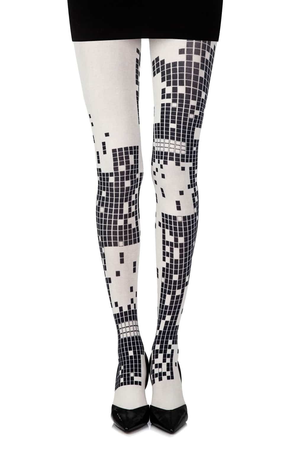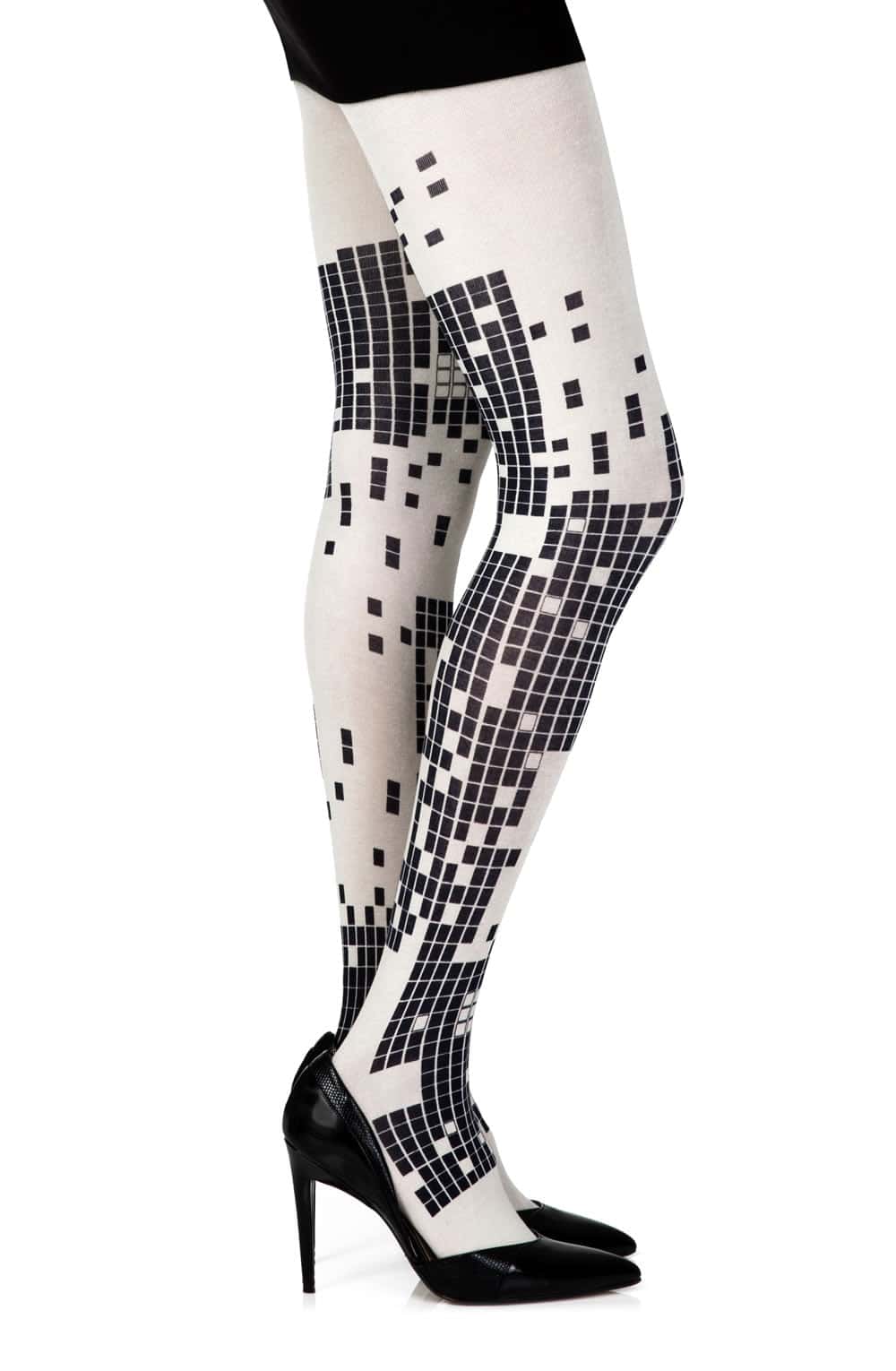 Press start on style with Zohara’s “Game Boy” tights! These opaque 100-denier cream tights feature classic black checkerboard prints on both legs, channeling retro gaming nostalgia with a fashion-forward twist.